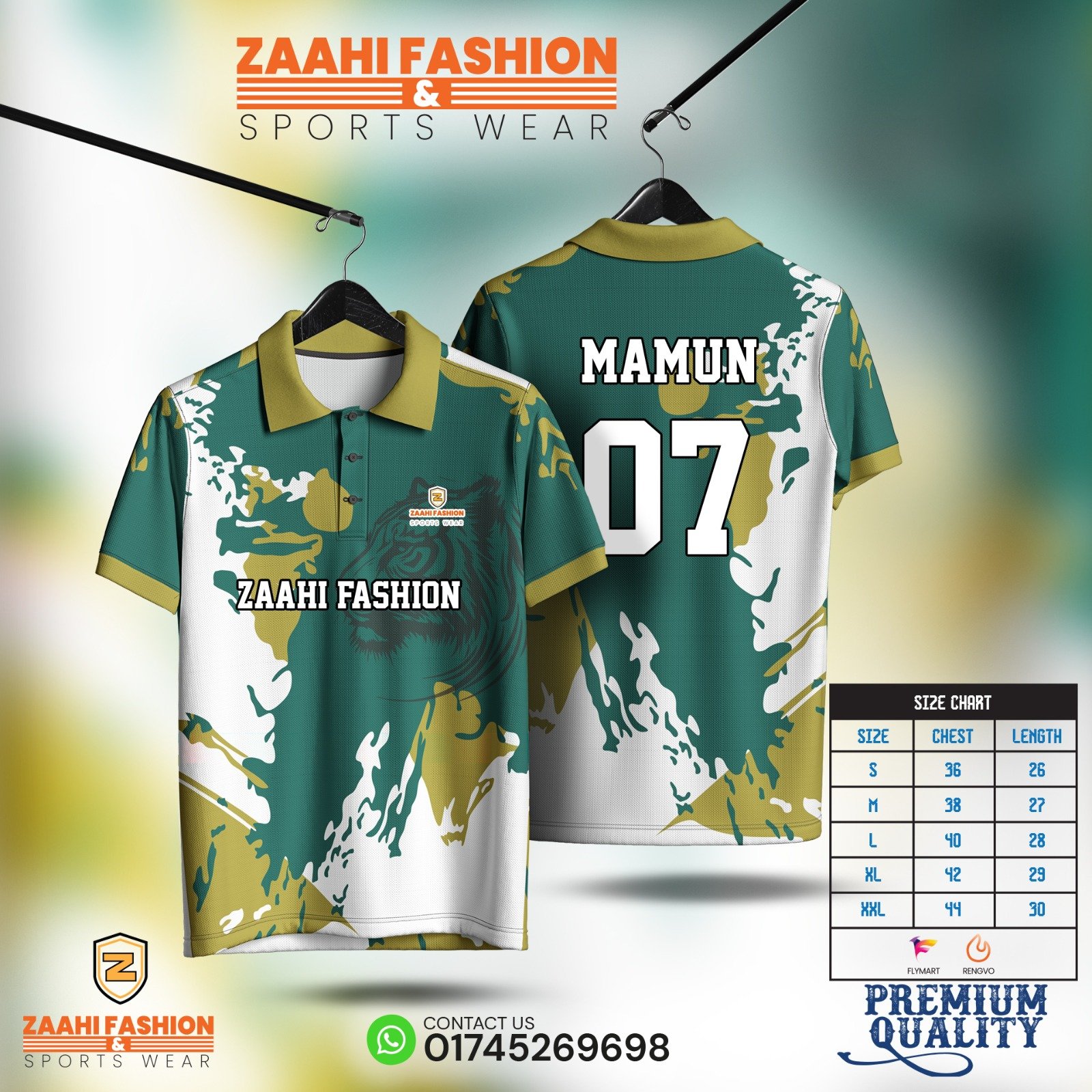 Men’s Sports Polo Jersey – Green Camo Stripes Jersey
